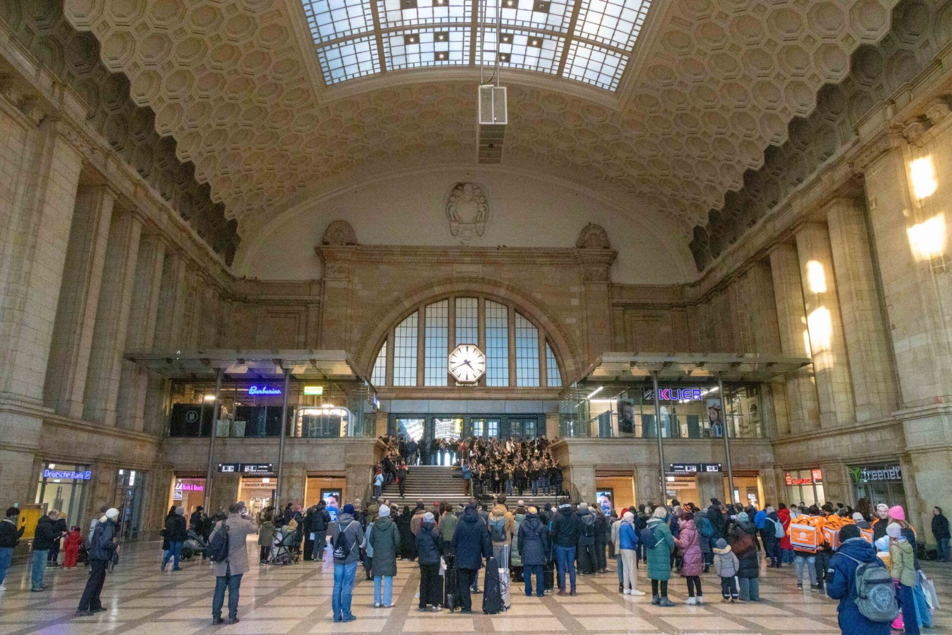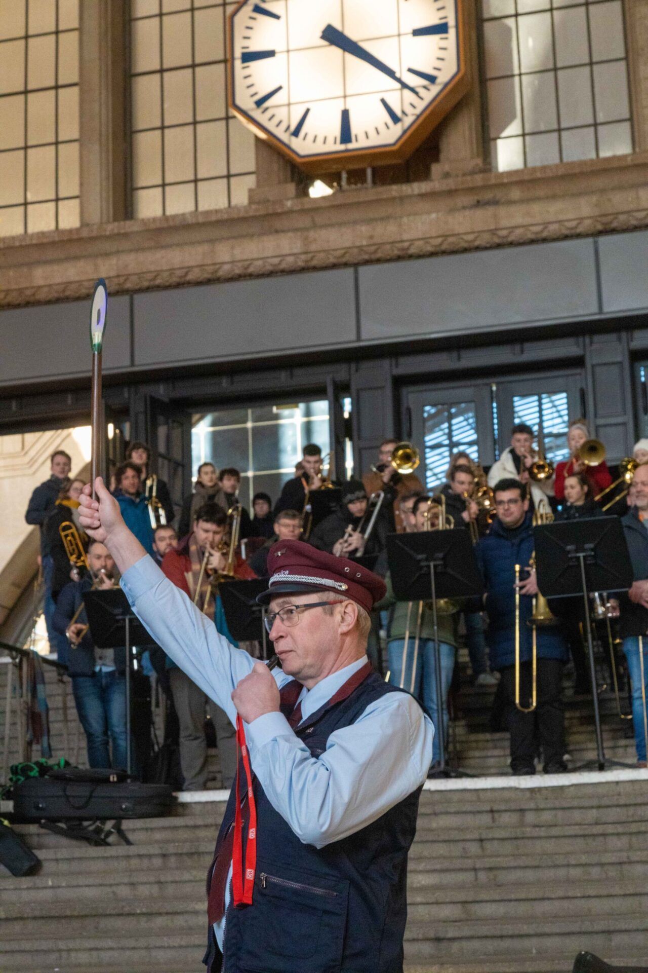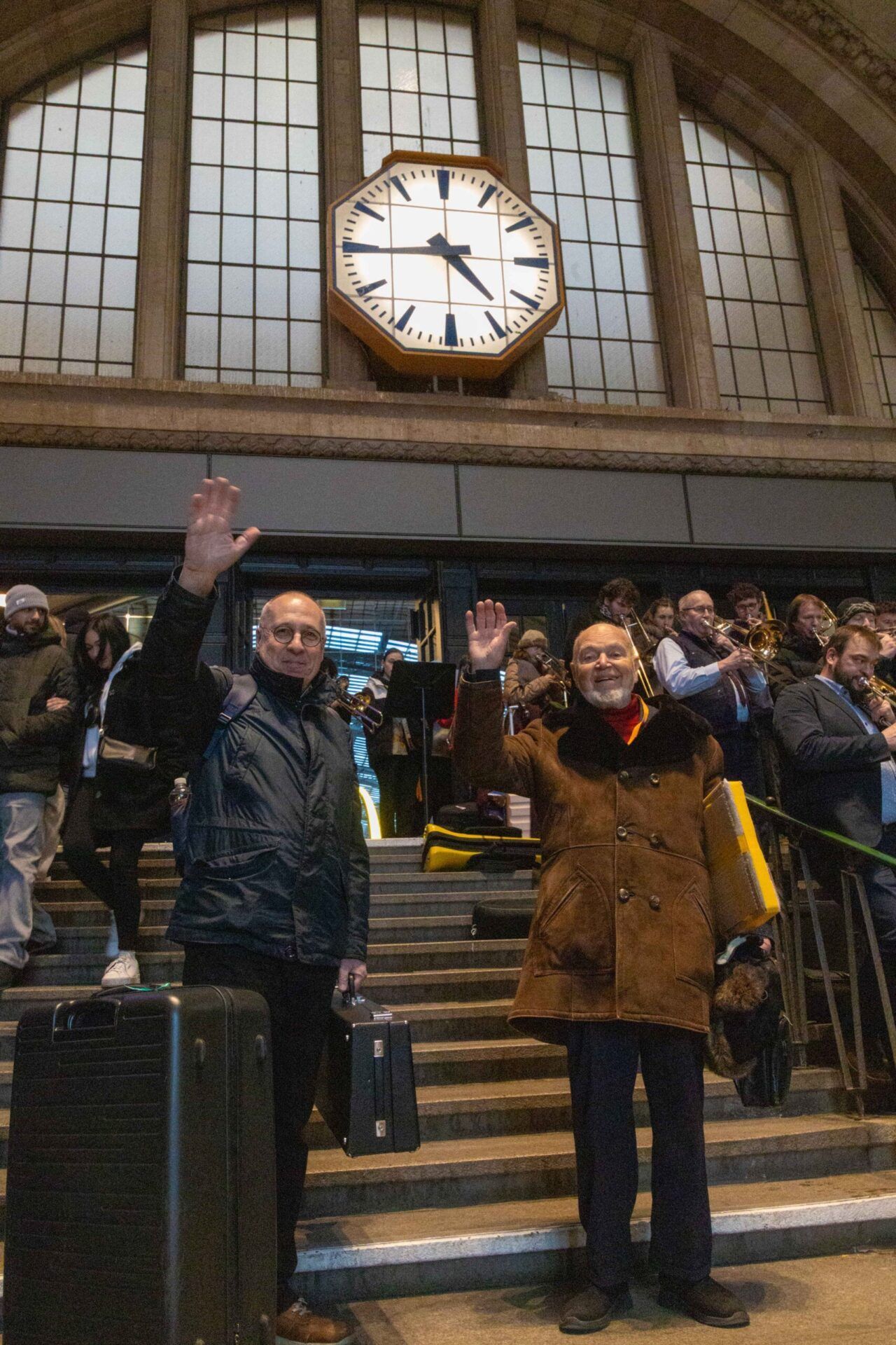 Den Abschluss bildete ein großes Posaunenensemble im Leipziger Hauptbahnhof, das eine gute Reise wünschte – unter anderem mit einem Arrangement des „Chattanooga Choo Choo“ aus der Feder von Frank van Nooy.